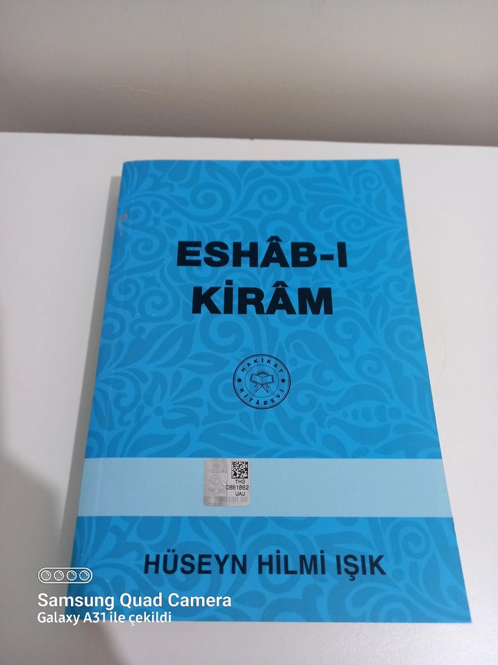 Eshab-ı Kirâm, Hüseyin Hilmi Işık tarafından kaleme alınmış, Peygamberin arkadaşlarının hayatlarını anlatan dini bir kitaptır. Kapak mavi ve desenlidir, QR kodu içerir.