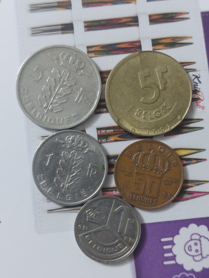 Gri ve kahverengi tonlarda, eski Belçika parası tasarımlı vintage erkek rozetleri.
