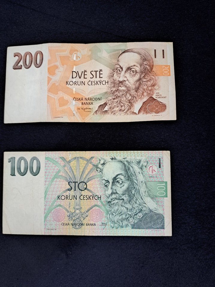Eski Çek Korun Banknotları 200 ve 100