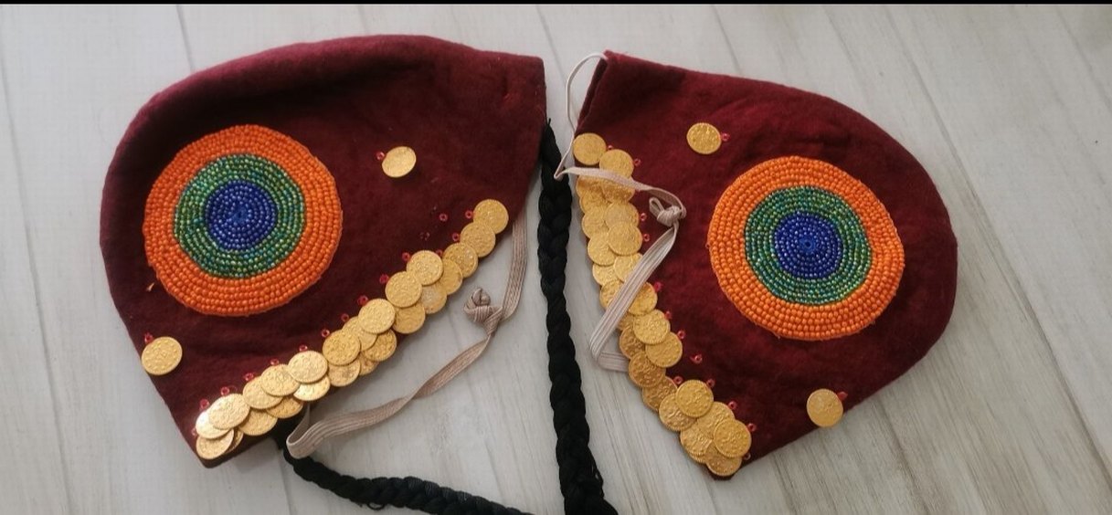 Bordo renginde, el işlemeli ve boncuklu, altın renkli para süslemeleriyle bohem ve retro tarzı yansıtıyor. ✨ Fiyat 1 adet icindir.