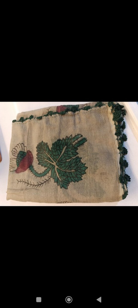 sandıktan çıkma taş baskı yemeni kenarının oyası eksik kalmış