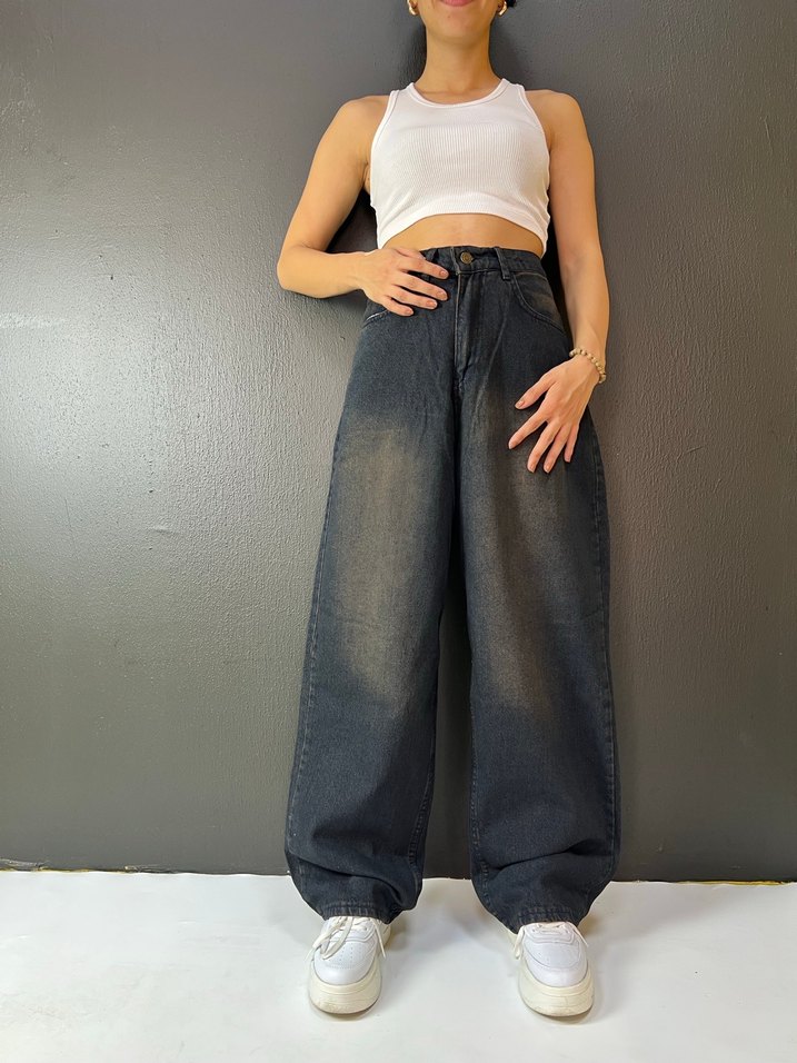 ESKİTME KAHVE YIKAMA BAGGY JEAN PANTOLON