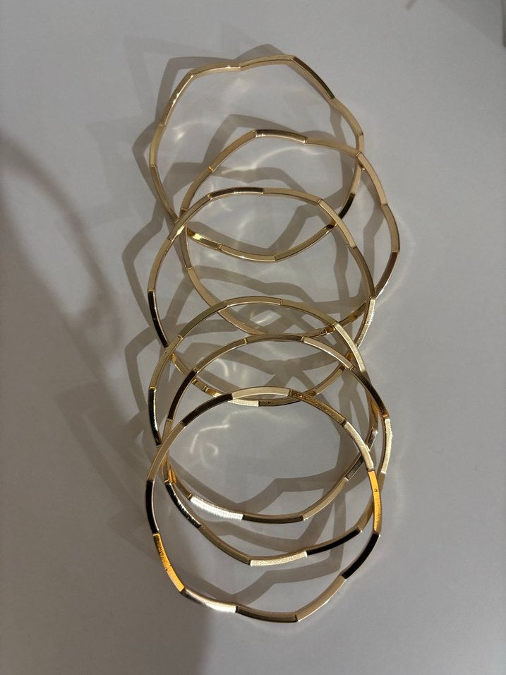 Zikzak model parlak altın rengi, çelik modern ve minimalist bilezikler günlük kullanım için uygundur. 6 adettir. 7 numaradır. Sıfırdır.