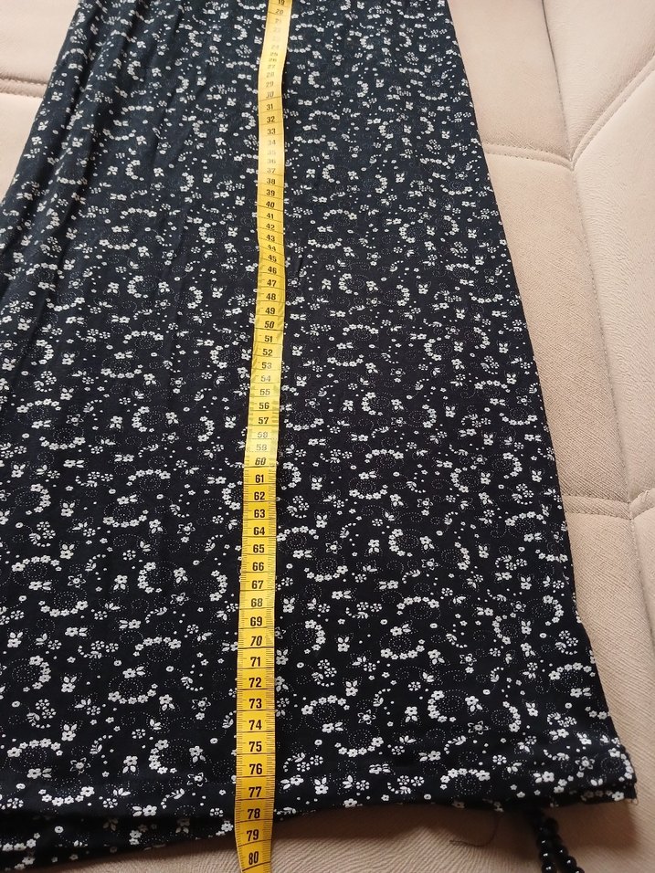 Siyah baskılı, esnek bel detaylı midi boyda ve bol kesimdir. Sentetik kumaştan üretilmiş, rahat ve şık bir seçenektir.