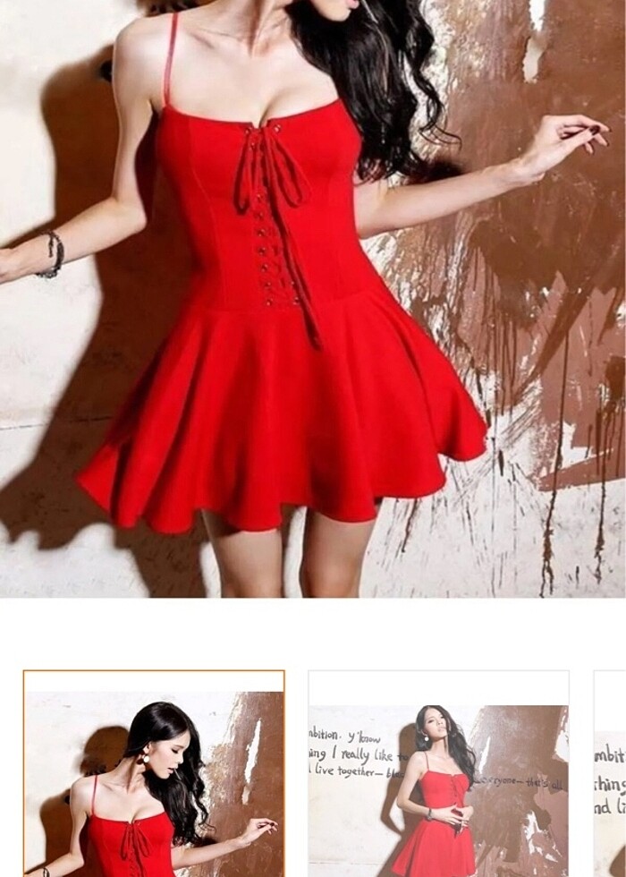 Esnek dalgıç kumaş önden bağcıklı kırmızı kilot elbise