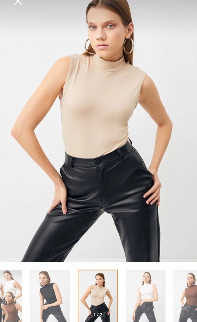 Bej renkli, yüksek yakalı ve kolsuz esnek görünümlü kumaştan yapılmış, normal uzunlukta ve vücuda oturan bluz. Ofis ve sokak stili için zahmetsiz şıklık sunar. ✨