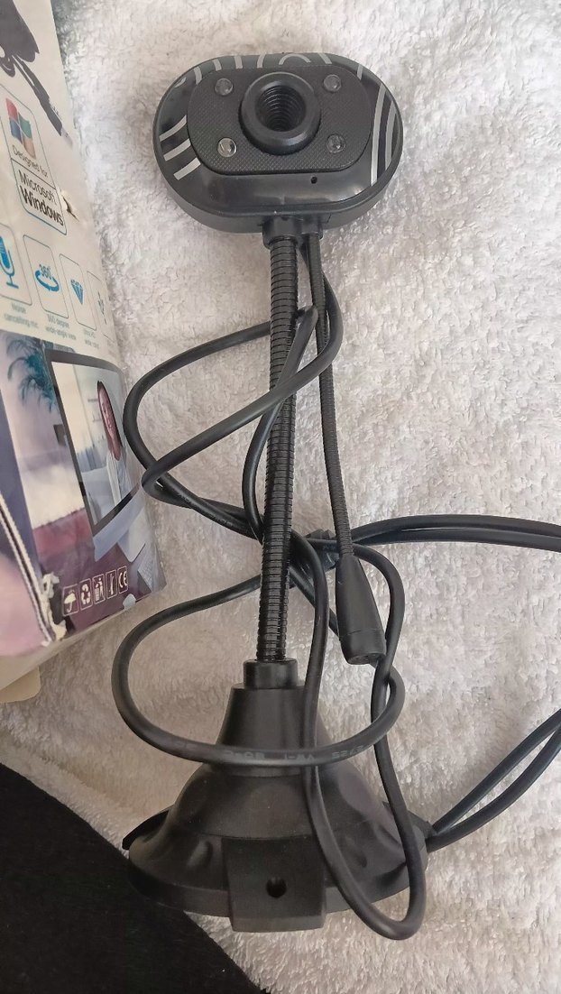 Esnek boyunlu ve ayarlanabilir standlı siyah masaüstü USB kamerası. Windows sistemleriyle uyumludur.