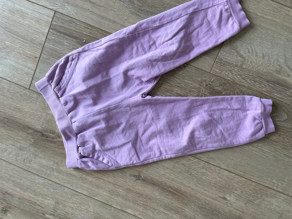 Kızlar için pastel mor renkte, rahat kesimli, yumuşak keten kumaştan üretilmiş sade ve normcore tarzında eşofman.