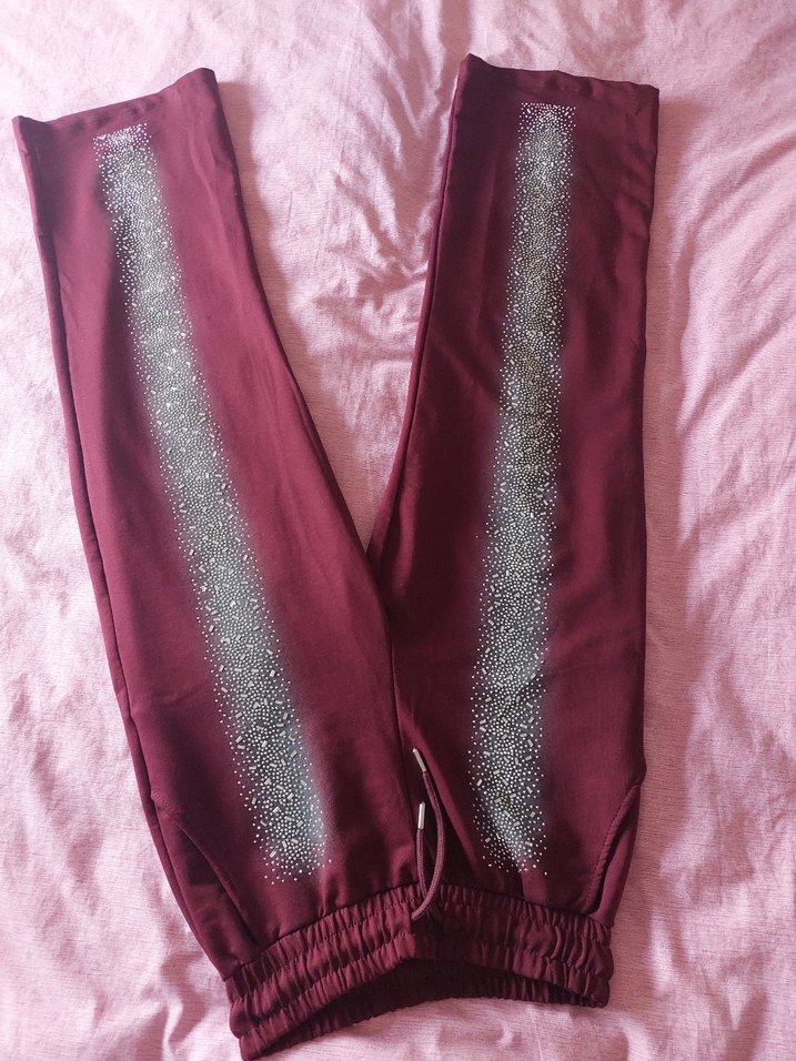 bordo önden simli şık eşofman altı boy 100cm bacak en 30cm