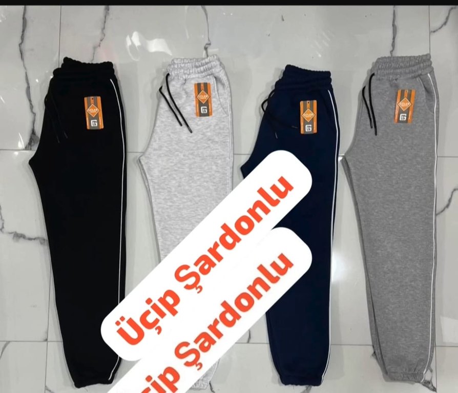 Yumuşak fleece kumaştan, gri renkli, Velcro detaylı, kısa boylu ve bol kesim erkek eşofman altı. Günlük rahat kullanım için uygundur.