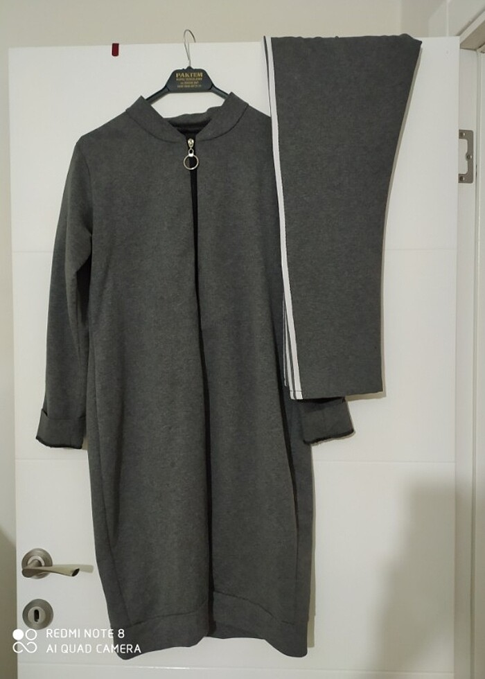 S/M beden yanlarında beyaz çizgileri var gri takım