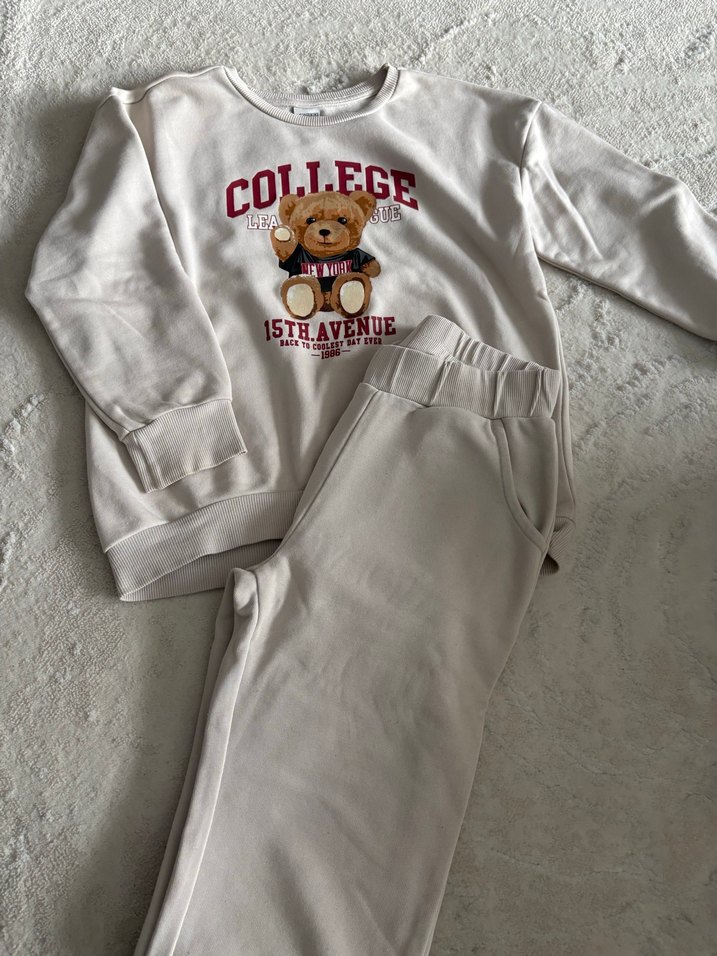 Kızlar için Beyaz Baskılı Sweatshirt ve Eşofman Takımı