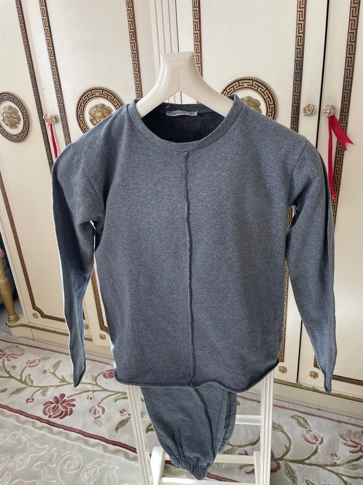 Bu gri sweatshirtü, bol kesim, uzun kollu ve bisiklet yaka detaylarına sahiptir. Yumuşak ve sıcak dokuma kumaştan üretilmiş, kısa boy ve rahat günlük kullanıma uygundur.