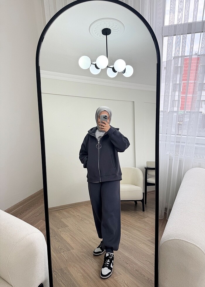 Eşofman takımı Antrasit Üç iplik Şardonlu kumaş Pantolon beli ve paçası lastikli 1-2 Beden şeklindedir Yeni etiketli ürün