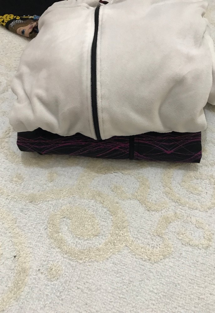 Kırık beyaz kadife eşofman ve kappa tayt takım kappa hırkada hafif bir defo var giyildiğinde belli olmuyor resimde belirttim kadife eşofmanın da bel lastiği biraz gevşemiş lastiği değişirse sorun kalmaz 36 38 bedene uygun