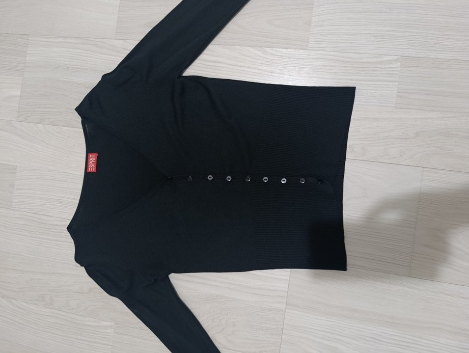 Düğmeli, V yakalı ve uzun kollu siyah kadın hirka. İnce merserize triko kumaştan, minimal ve normcore tarzda, günlük kullanıma uygun. Yeni alınmış gibi defosuz tam siyah asla tüylenme yapmaz 36/38 beden esprit marka siyah hırka #esprit#mango#hirka