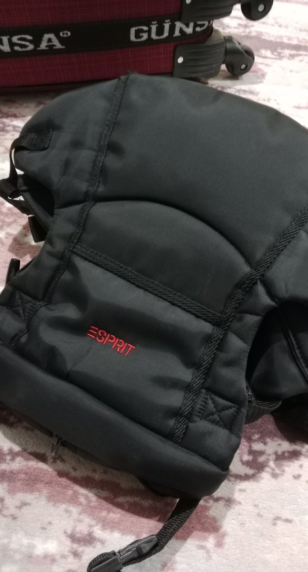 ESPRIT markalı siyah bebek taşıyıcı, konforlu taşıma için yastıklı destek ve ayarlanabilir kayışlara sahiptir. Güvenli ve kolay kullanım sağlar.