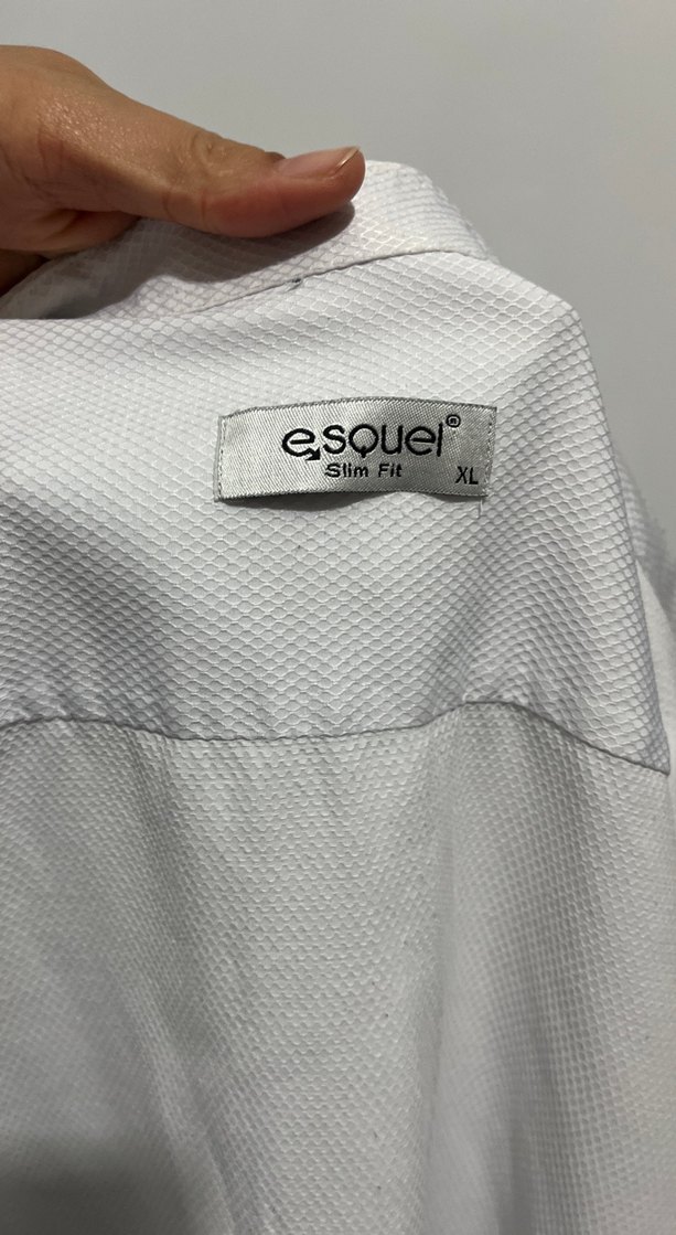 Erkekler için uzun kollu, yaka detaylı, sentetik kumaştan yapılmış. Düğmeli, normal kesim, gri-beyaz baskılı, ofis kullanımı için uygun. Esquel markası, XL slim fit. Beyaz renk sıfır ütün