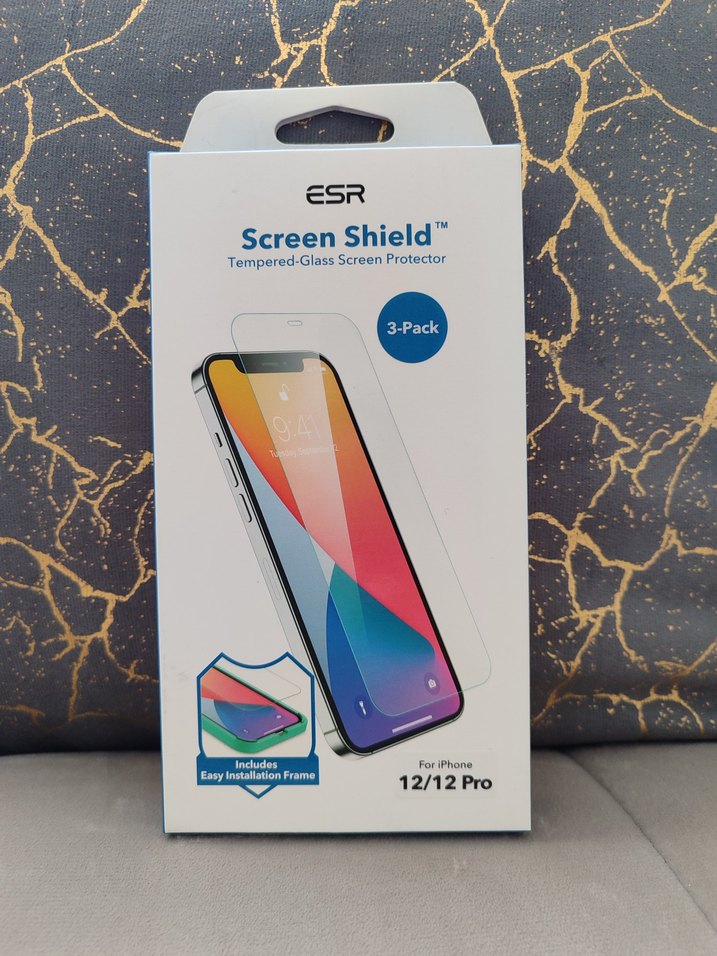 iPhone 12 ve 12 Pro için ESR Screen Shield temperli cam ekran koruyucu. Kolay montaj çerçevesi ile 2'li paket halinde. ️ içerisinde iki adet kırılmaz cam, İki adet temizleme mendili ve camı kolay takabilmeniz için bir tane aparat bulunmaktadır. Normalde Üç adet cam vardı birini kullandım. Telefon değiştirdiğim için elimde kaldı.