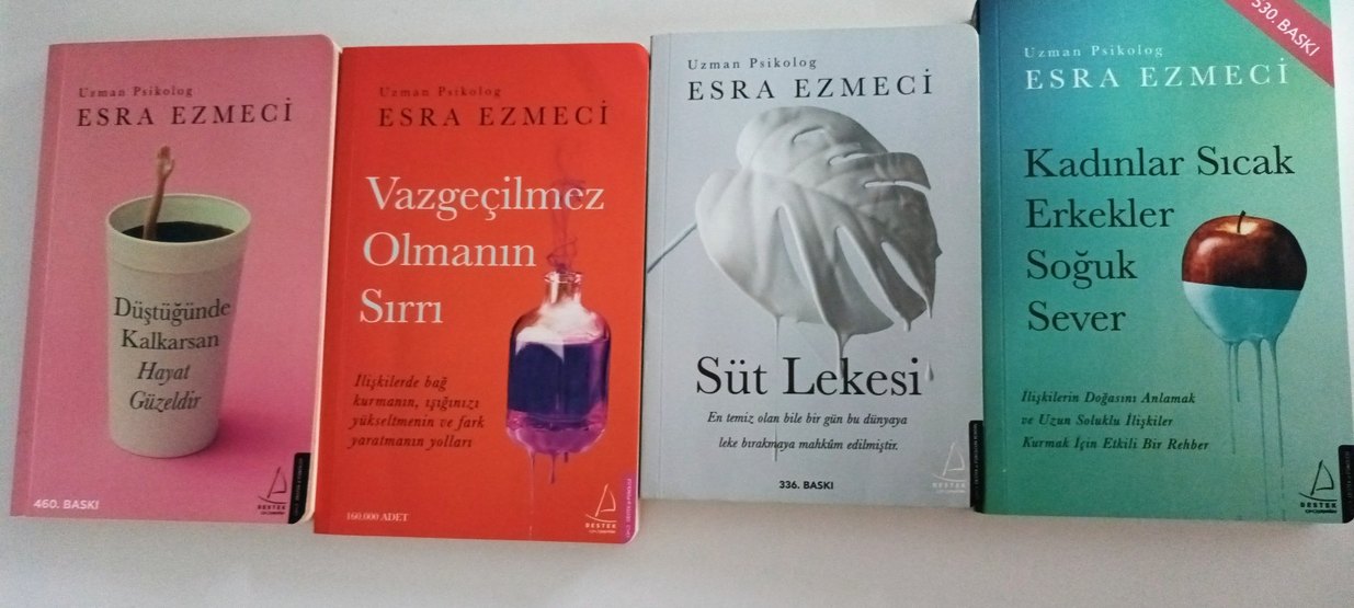 Uzman psikolog Esra Ezmeci'nin kişisel gelişim ve psikolojik konuları ele alan "Süt Leke" ve diğer kitabı. bazı satırlarda altı çizili yerlere denk gelebilirsiniz Fakat sadece 2 kitapta çok çok az altı çizili yer vardır bilginize..