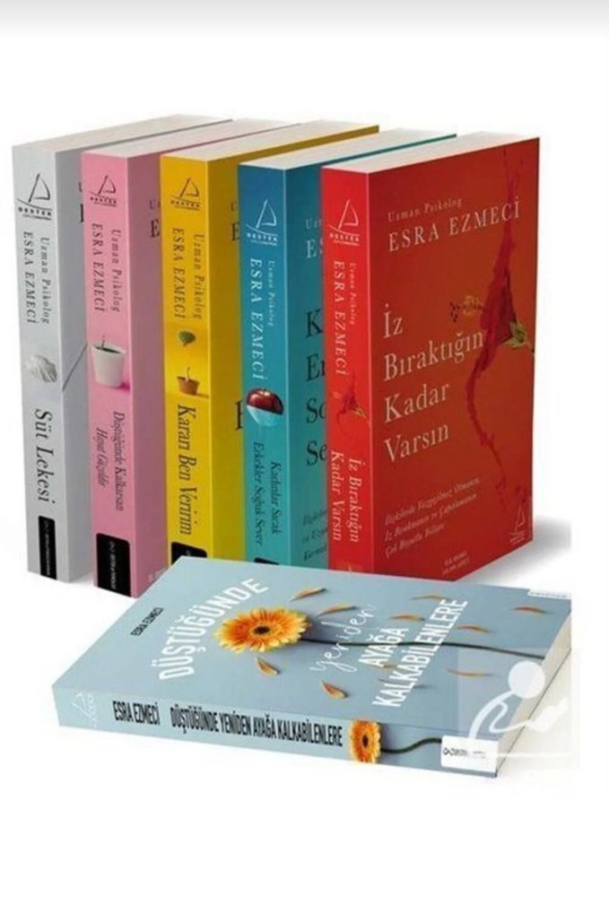 Esra Ezmeci'nin "İz Bıraktığın Kadar Varsın" ve "Süt Lekesi" gibi kitaplarını içeren 6 romanlık set.