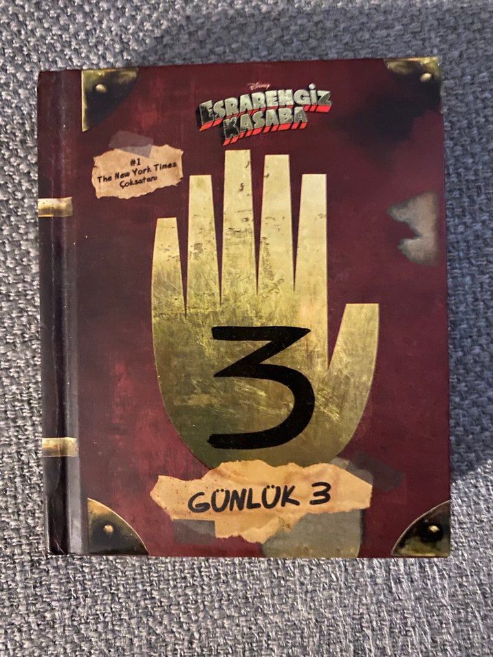 Esrarengiz Kasaba serisinin üçüncü günlük kitabı, kapağında belirgin altın renkli bir el figürü bulunuyor.