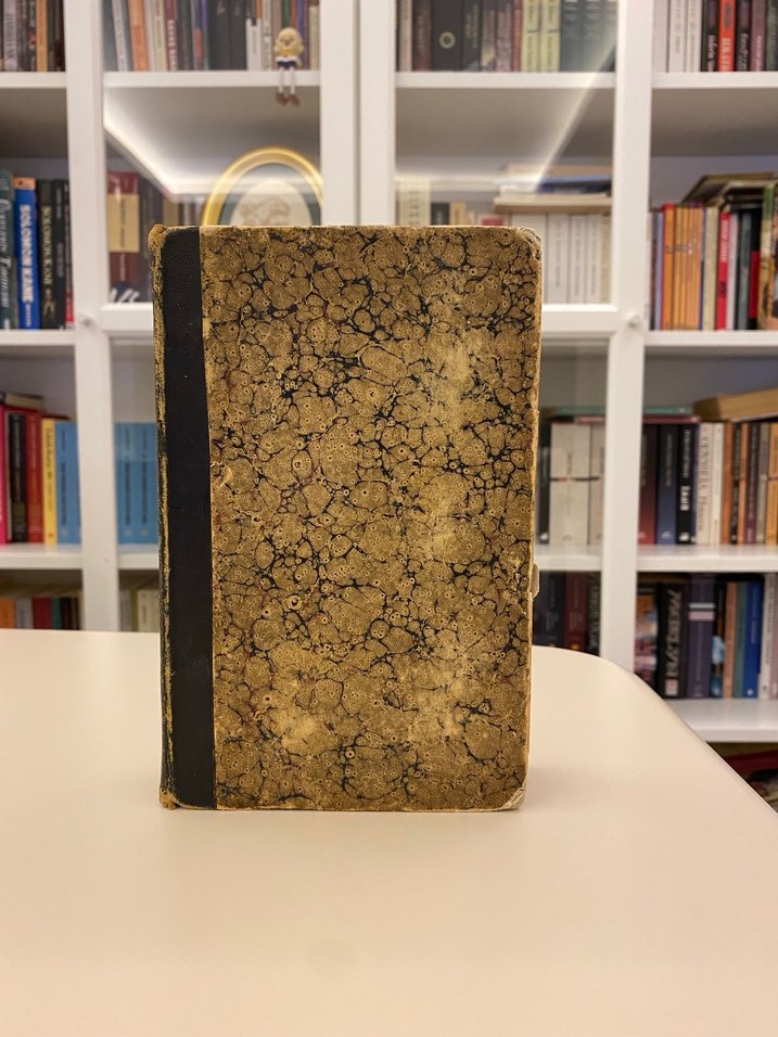 Chez LeFevre Libraire, fransızca Montaigne-Denemeler kitabı, baskı yılı 1836, kitabın 2. cildi. Yaşına göre diri kondisyondadır. Ufak bir cilt ayrılması ve bazı sayfalarda küçük çaplı kurt yeniği var.