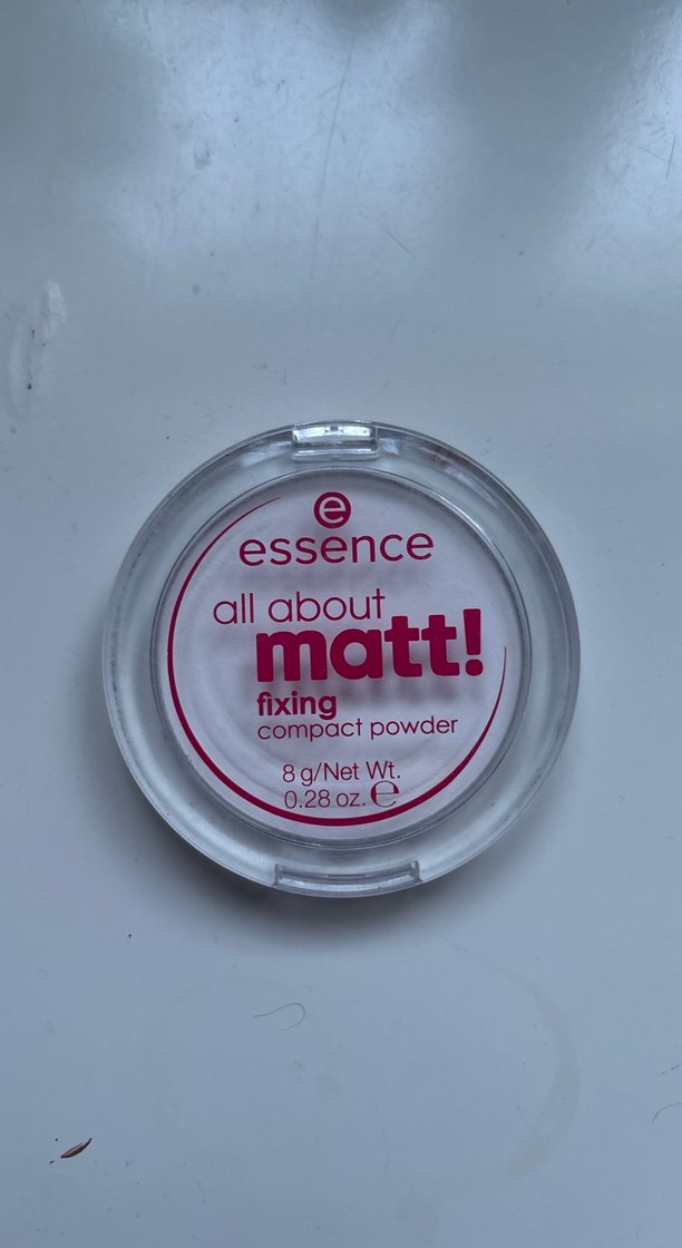 Essence All About Matt! sabitleyici kompakt pudra, açık bej renkte. Mat bir görünüm sağlar ve makyajı sabitlemeye yardımcı olur.. çok az kullanıldı.