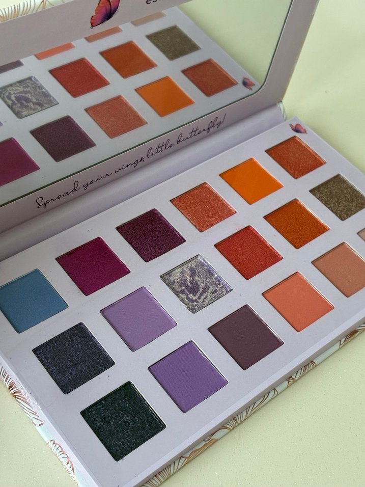 Çok renkli, mat ve ışıltılı tonlardan oluşan göz farı paleti, uygulama için içinde ayna barındırır.