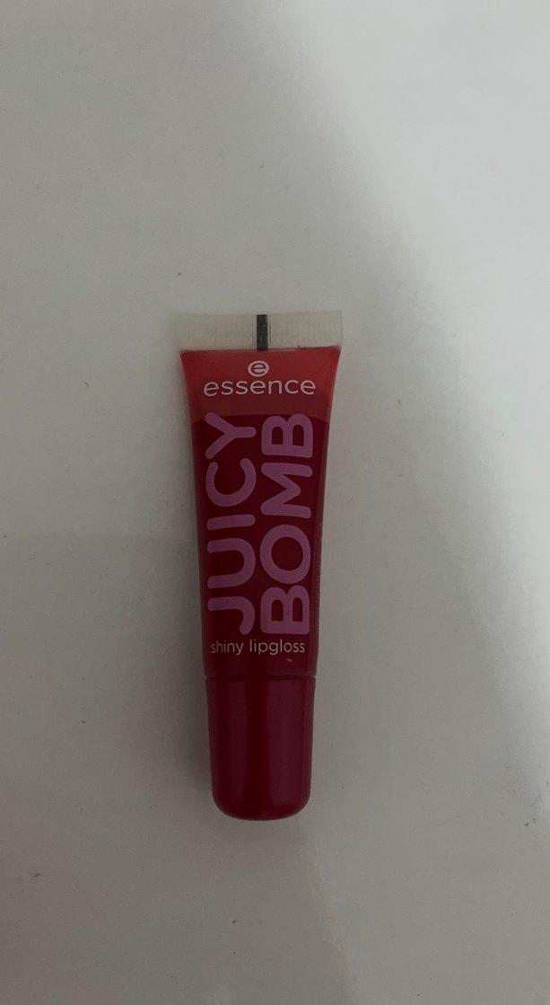 Essence Juicy Bomb dudak parlatıcısı, canlı bordo renkte ve parlak bir görünüm sağlar.
