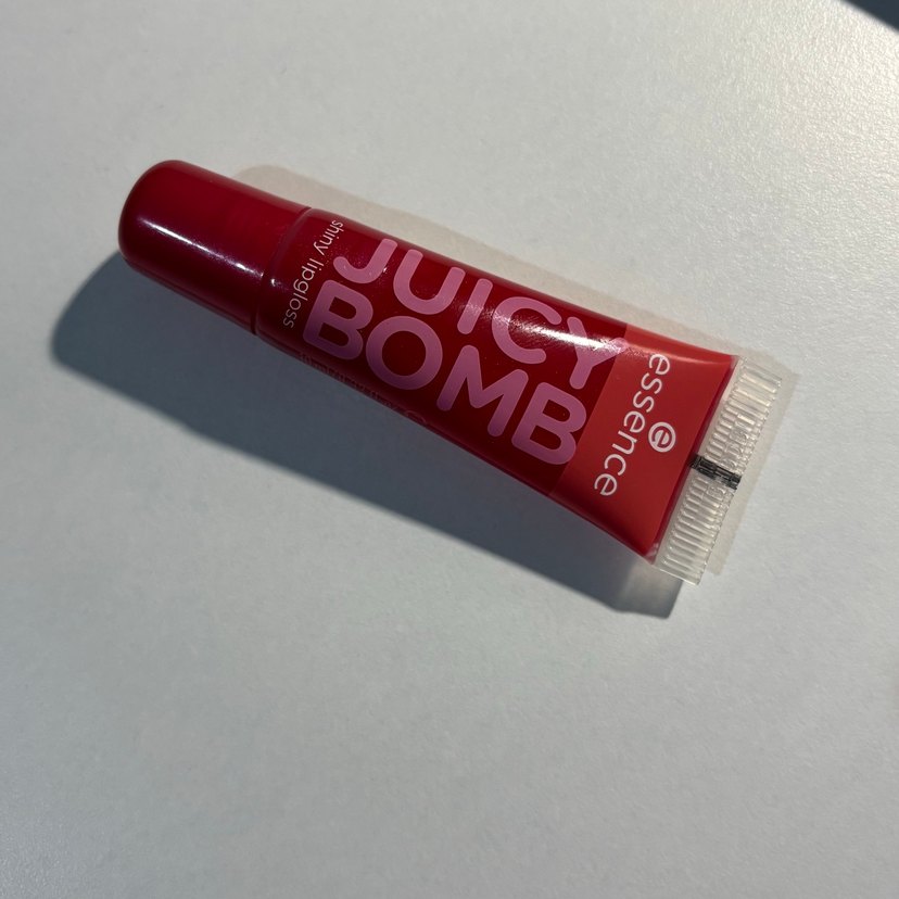 Essence markasına ait Juicy Bomb dudak parlatıcısı, canlı kırmızı renkte parlak bir görünüm sağlar. 2-3 kez kullanıldı