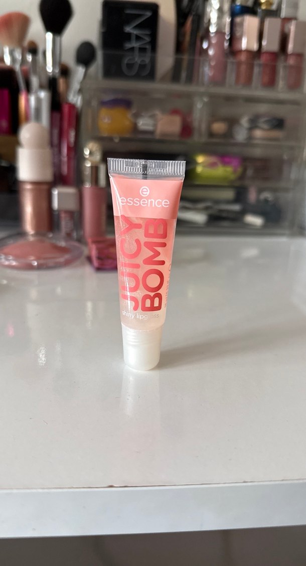 Essence Juicy Bomb, dudaklara parlak bir görünüm veren pastel pembe renkte dudak parlatıcısıdır.