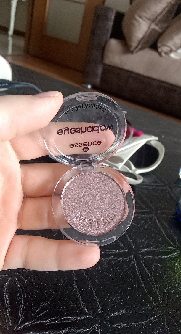 Essence Metal göz farı, bej ve canlı gri tonlarında, metalik bitişli. Kompakt ve kolay uygulanabilir, gözlere ışıltı katar.