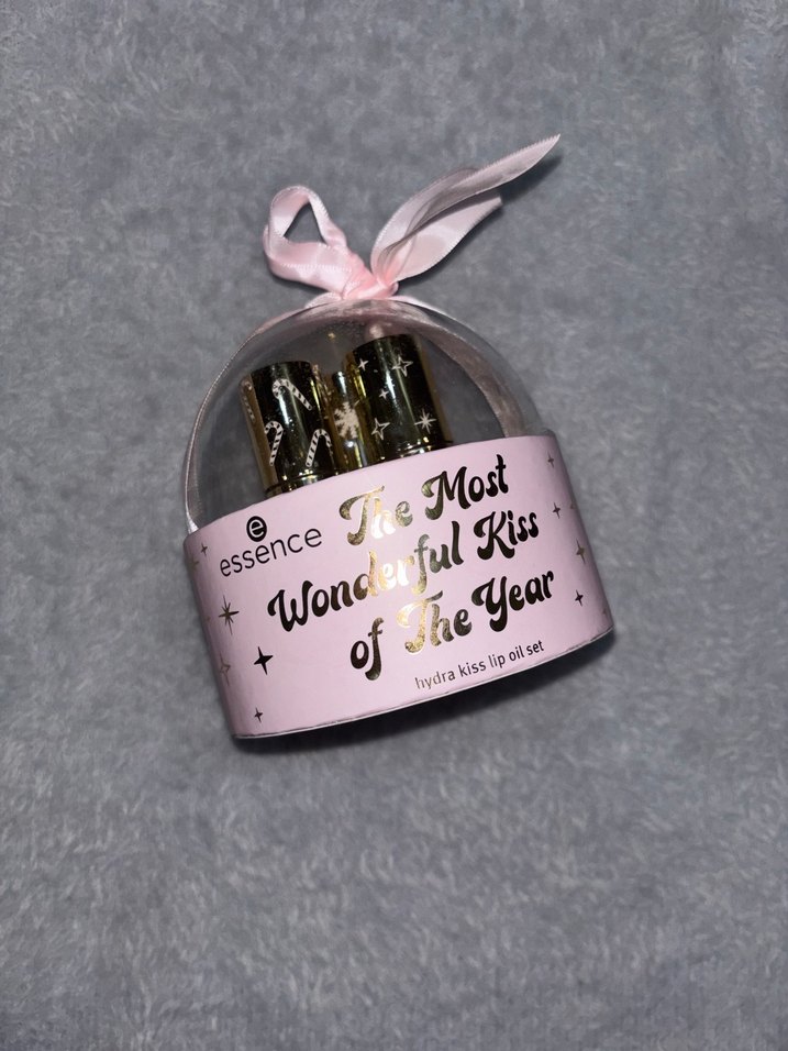 Essence markasının pastel pembe tonlarında, nemlendirici formüllü dudak parlatıcısı seti, pembe kurdeleli yuvarlak ambalajda sunulmuştur.