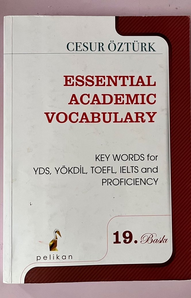 Cesur Öztürk tarafından hazırlanan Essential Academic Vocabulary, YDS, YÖKDİL, TOEFL, IELTS ve proficiency sınavları için anahtar kelimeler sunar. F bolumune kadar Sadece verbs cozulmus diger yerleri boş