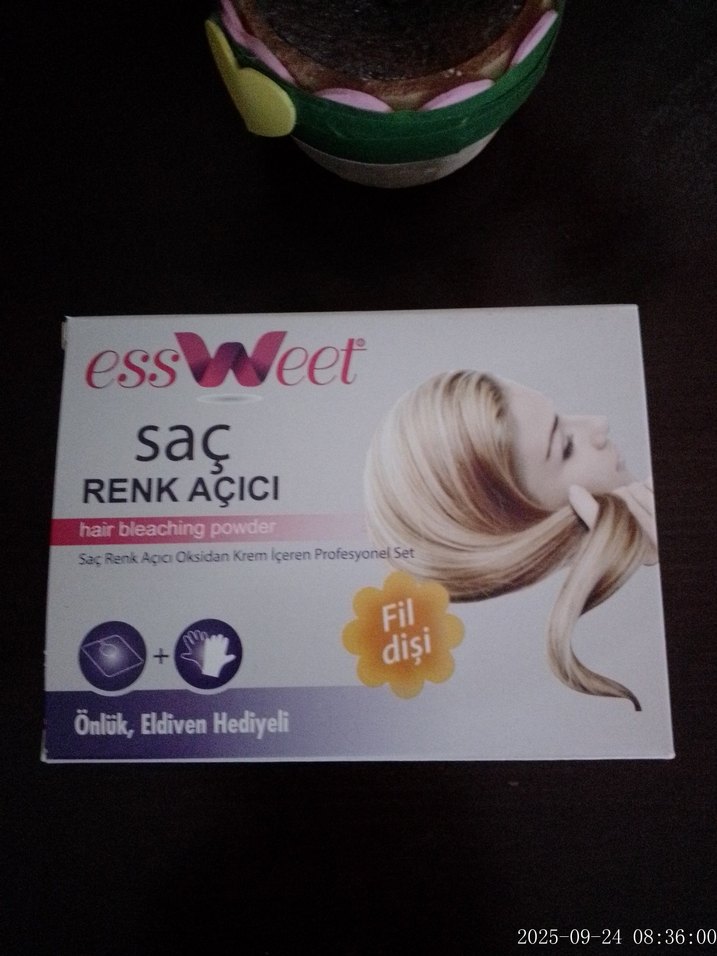 Essweet saç renk açıcı toz seti, oksidan krem, eldiven ve önlük içerir. Saç açma işlemi için uygundur.