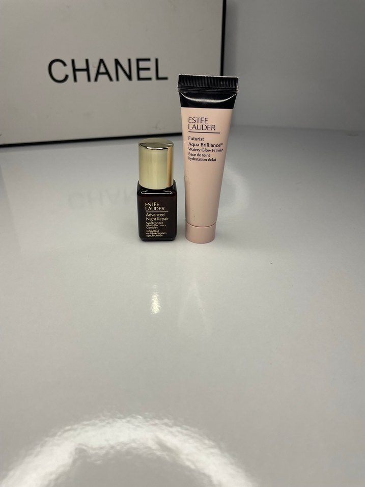 Estée Lauder'ın gelişmiş formüllü kadın anti-aging serumları, cilt görünümünü iyileştirmek için küçük şişe ve tüpten oluşur.