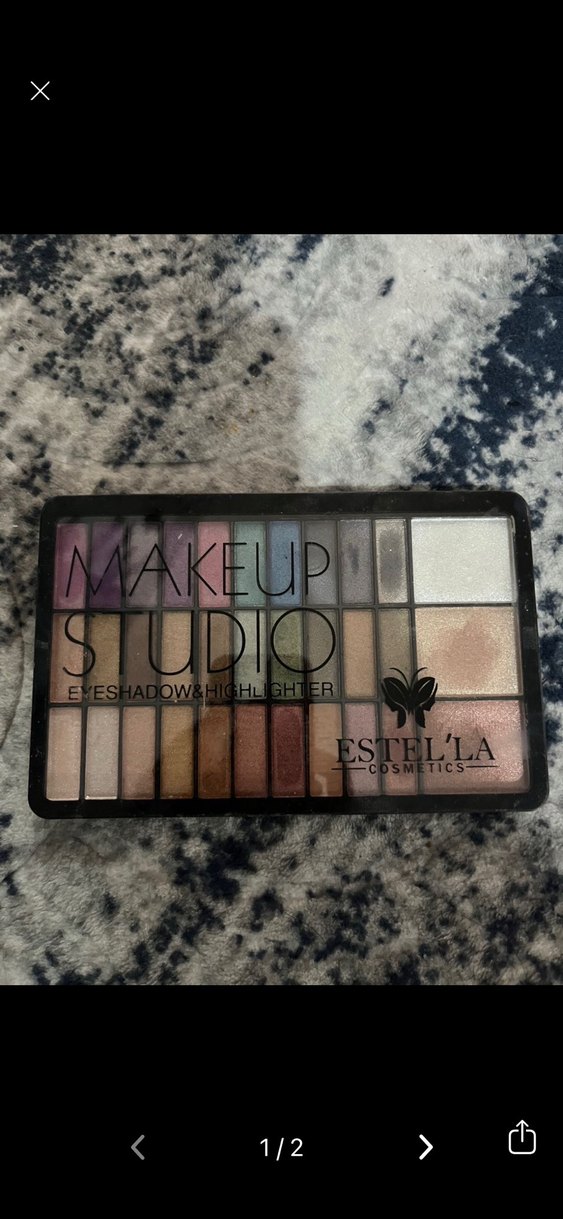 Estel'la Makeup Studio göz farı ve aydınlatıcı paleti, koyu ve bej tonlarında çeşitli renkler sunar.