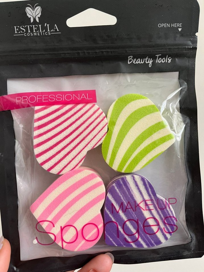 Estel'la markasına ait renkli kalp şekilli makyaj süngerleri, yumuşak dokusu ile pürüzsüz uygulama sağlar. Dört adet sünger içerir.