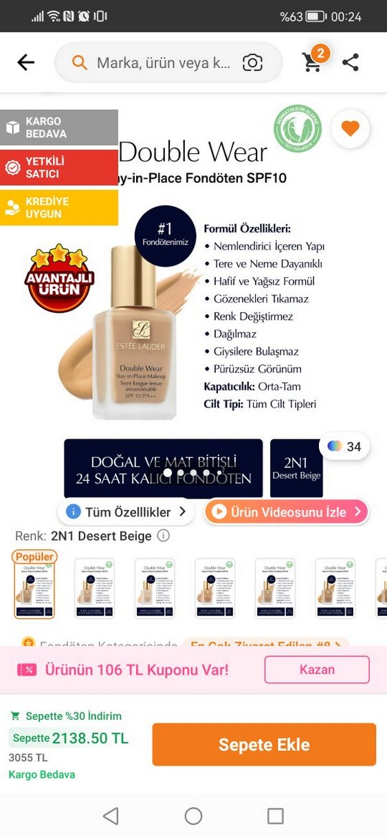 Ürünün sadece rengine baktım. Bana uymadı çünkü çok açık tenliyim. Ama herkesçe çok tercih ediliyor. Kapatıcılığı çok iyi mat bitişli kadifemsi bir etkiye sahip. Kendi 2138 e aldım.