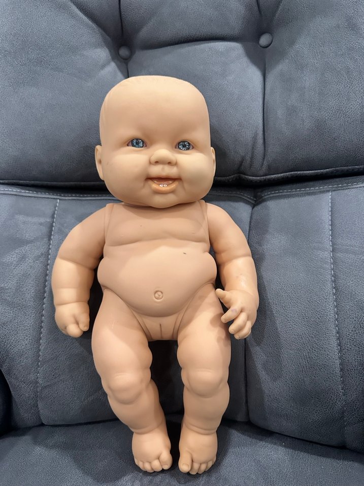Mavi gözlü, detaylı yüz ifadelerine sahip et bebek 40 santimdir