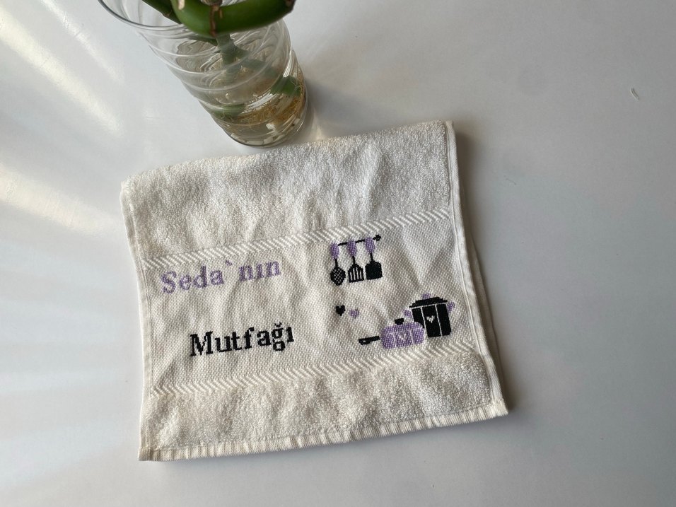 Etamin yapımı beyaz ve mutfak havlusu, üzerine istediğiniz işim yazılır sipariş oluşturabilirsiniz