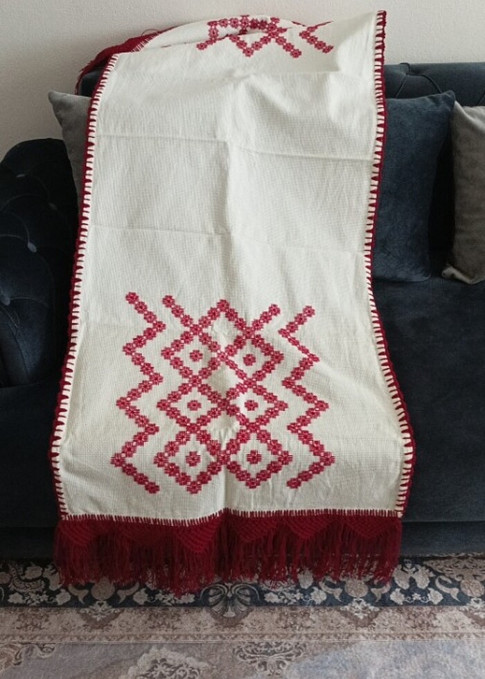 Etamin el işlemesi buzdalabi örtüsü