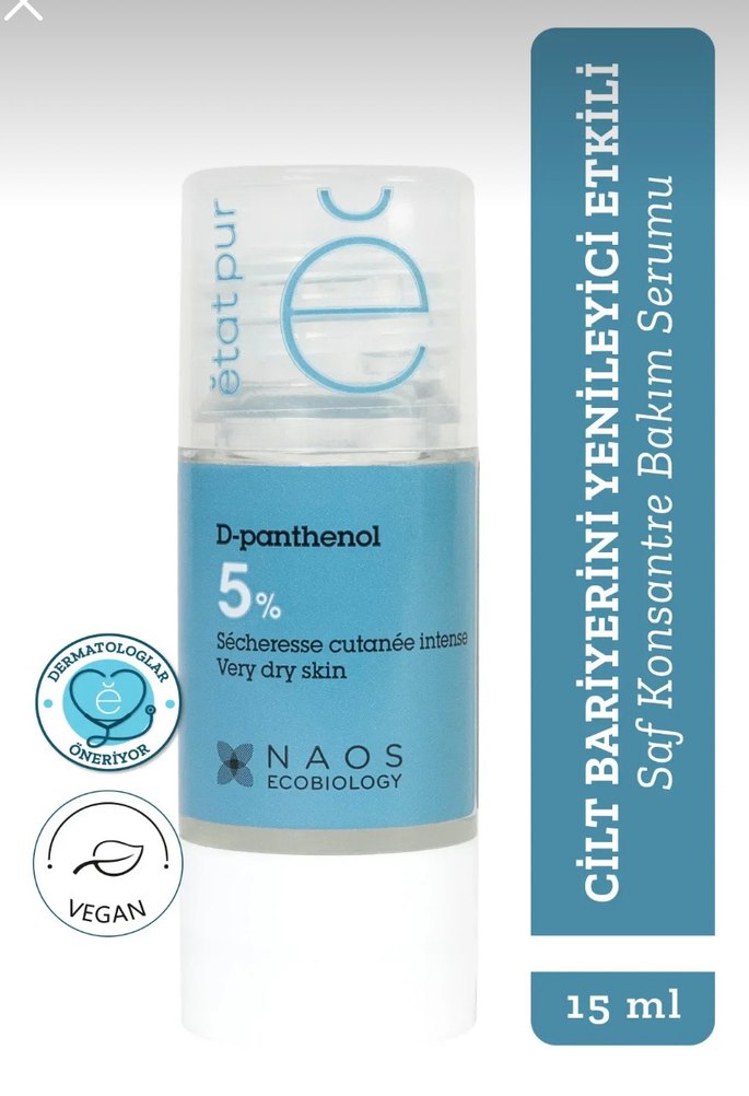 D-panthenol %5 serum, çok kuru ciltler için çift bariyer yenileyici etkili saf bakım sağlar. Vegan ve dermatolog onaylıdır.