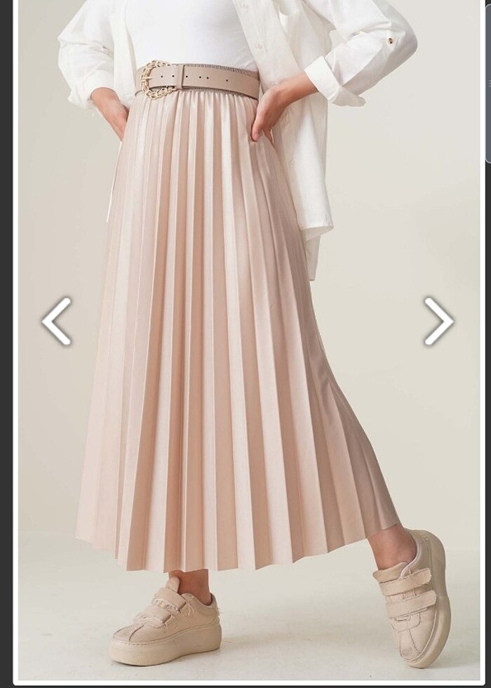 Pliseli deri görünümlü bej rengi astarlı sadece 1 kez giyildi