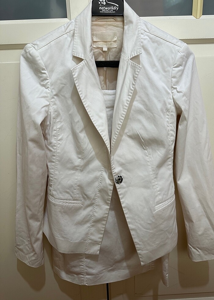 İkili takımdır ceketin yakasında son fotoda görüleceği üzere leke mevcuttur ancak kullanıma engel değildir bedeni 34 dür