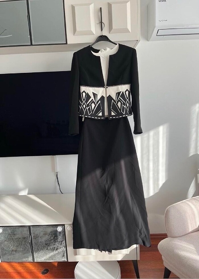 İki kere giyildi sadece ceketin iki taşı eksik buraya yükleyeceğim için bakınca fark ettim belli belirsiz, eteği fermuarlı yırtmaçlı kaliteli takım