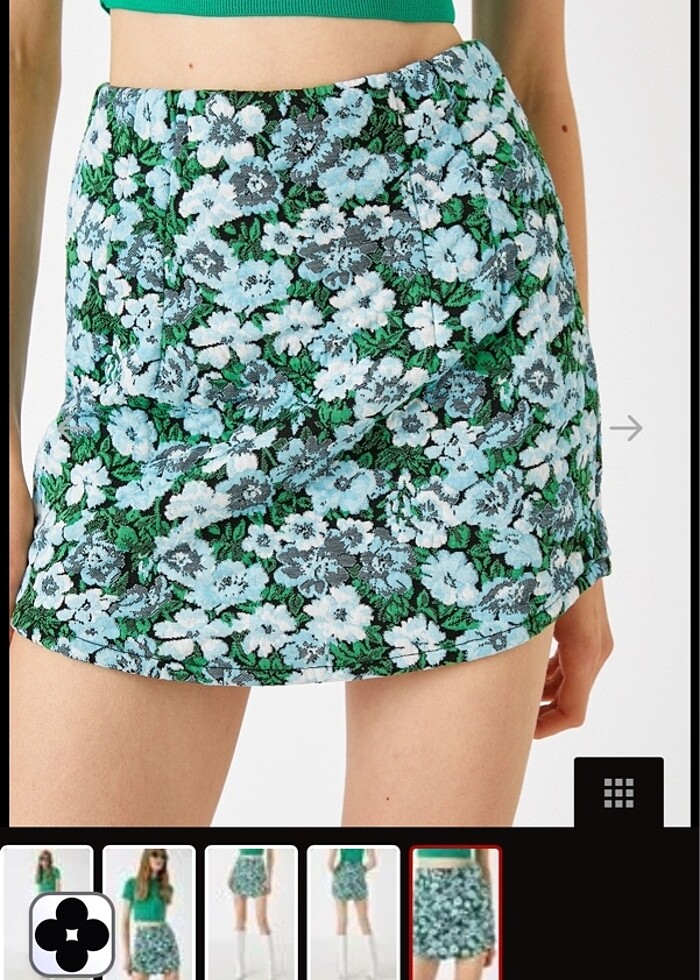 Çiçekli yazlık - baharlık etek. Kumaşı yumuşacık. Büyük bedeni olmayıp mutlaka Kilo veririm diye görüp çok beğendiğim için aldığım kıyafetlerden yalnızca birisi. İnanılmaz beğeniyorum ama 1 senedir dolabımda bekliyor. Hiç giyilmedi o sebeple hiç yıkanmadı da yeni kokusu hala üstünde ancak etiketi koparılmış vaziyette. Kumaşı çok esnektir. Kendi sitesinde 400 TL dir