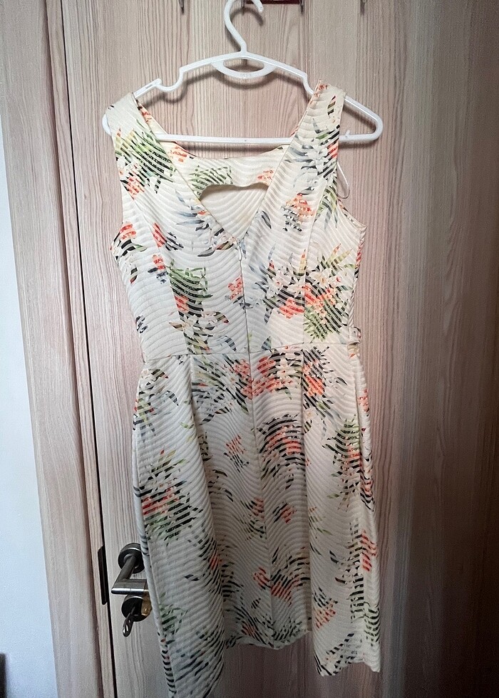 Birkez giyildi hiçbir hatası yok kumaş kalitesi çok iyi etek kısmında pile detayı var bel oturtmalı sırtı V elbise beden XS fakat S ile uyumlu geniş kalıp