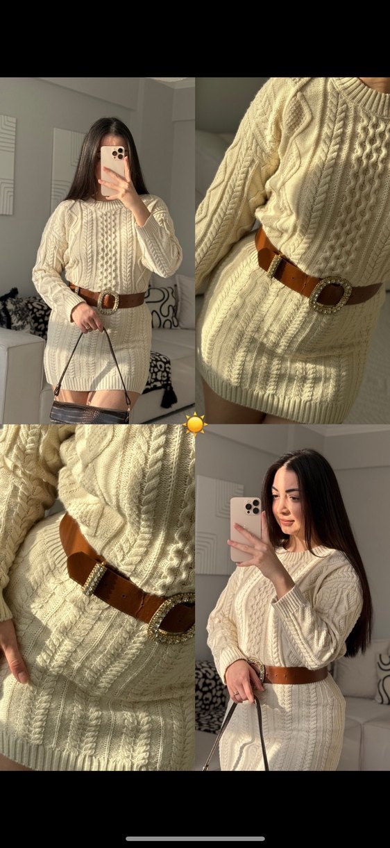 Etek kazak takım 2-3 kere giyilmiştir. Kemeri kendimiz takım yaptık. Kemeride fiyatın içindedir
